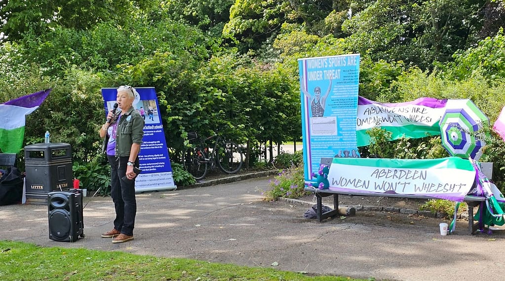 We were delighted to hear from a number of Aberdeenshire women at our event in Duthie Park. Unfortunately our event was marred by violence from a trans rights activist. However, being women who won’t wheesht, our speakers persisted.